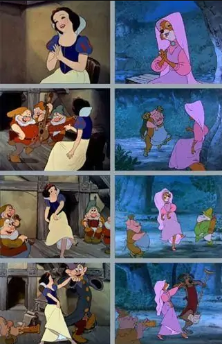 Maid Marian: also a red fox, she was voiced by Monica Evans. The dance scene during “The Phony King of England” is rotoscoped from Snow White and the Seven Dwarfs.