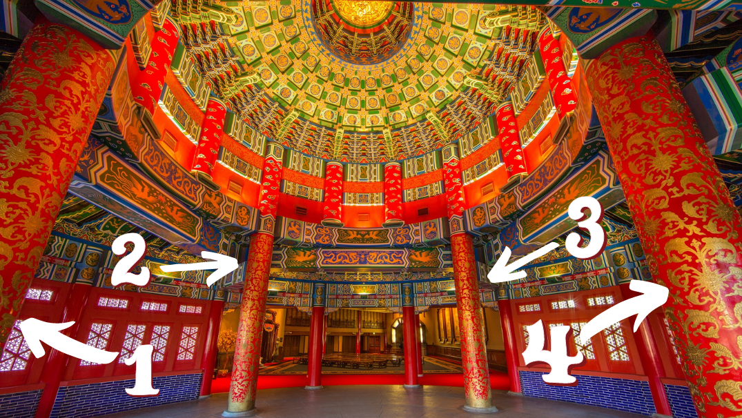 While the interior of the temple has 4 columns, each representing a season.