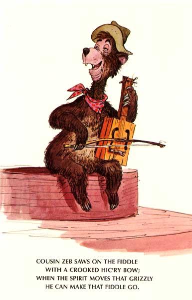 Zeb plays the fiddle with a crooked hickory bow…and well, you know the rest. Fun Fact- the small bear cub at the bottom of the stage, is named Little Oscar and is the son of Zeb.